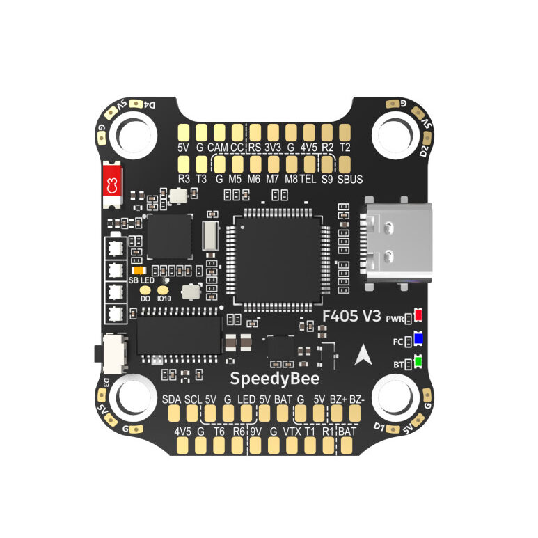 The SpeedyBee F405 V3 is a powerful F405 Flight Controller designed for modern builds. Featuring built-in Bluetooth and a battery indicator, this SpeedyBee FC offers professional performance for Racing Drone Electronics.